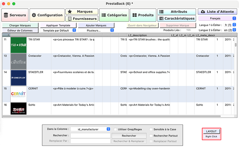 Connect multiple PrestaShop stores simultaneously. For each server, choose which sections to synchronize (products, categories, brands...) to load only what you need. Switch between stores with one click, with a dedicated local cache per server.